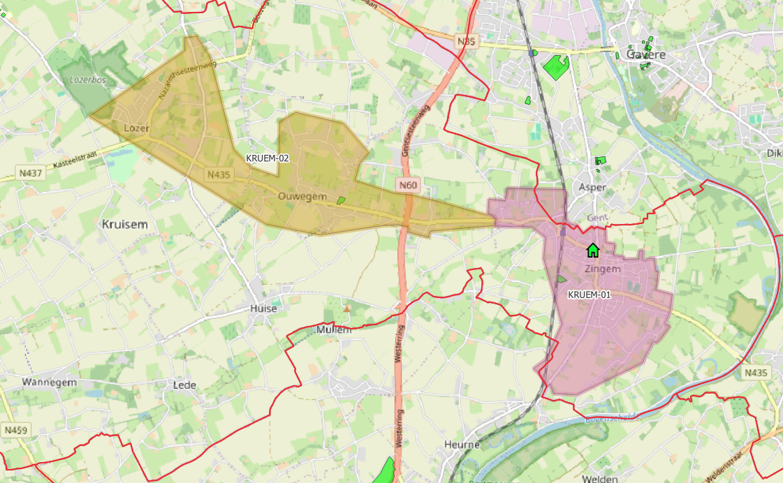 Het aansluitbare gebied in Kruisem hebben we opgedeeld in 2 fiberzones (klik hier om het kaartje te vergroten).